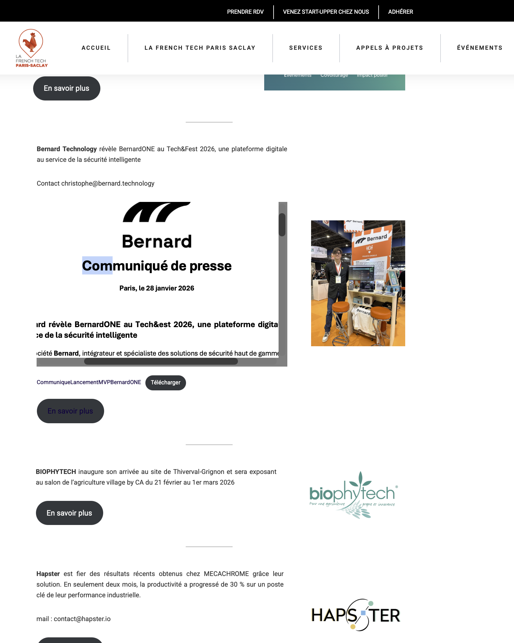 Nous avons le plaisir d’annoncer que Bernard Technology bénéficie du soutien de La French Tech Paris-Saclay, à l’occasion de la présentation de BernardONE lors du Tech&Fest 2026. Notre plateforme digitale de sécurité intelligente a été mise en avant dans les actualités start-up de cet écosystème d’excellence, aux côtés d’autres acteurs innovants du territoire.