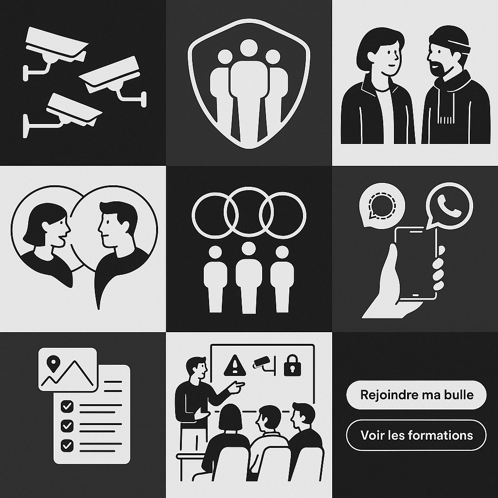 Vérification & éthiqueÉchange, partage, formation et conseils via des outils sécurisés (WhatsApp, Signal, BernardOne). L’humain et la confiance au cœur de la protection.